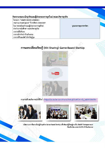 การแลกเปลี่ยนเรียนรู้ (KM Sharing) Game-Based StartUp