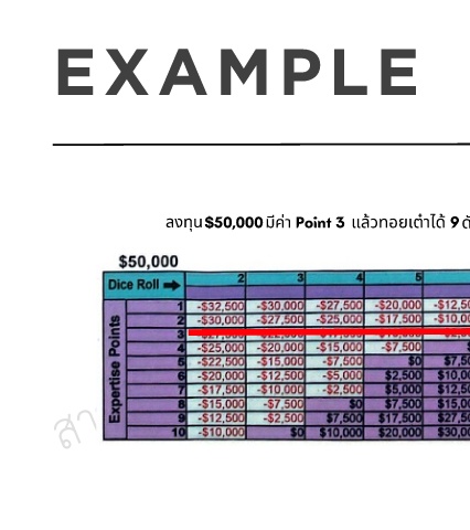 ลงทุน        $50,000มีค่า Point 3                        แล้วทอยเต๋าได้ 9ดังนั นจะได้กําไร $20,000