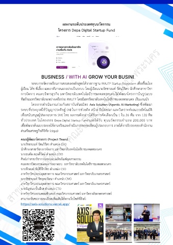 โครงการดำเนินงานร่วมกับสถาบันพันธมิตร Axis Solution (Agentic AI Marketing) ซึ่งพัฒนา
