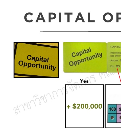 CAPITAL OPPORTUNITY จํานวนเงนทนักลงทุนเสนอ ิ ี ี % ของ Ownership ทเสียไป Yes But + $200,000 ถอดบทเรียนและเรียบเรียง โดย อาจารยปาริชาติ ชวนรักธรรม ้ ์