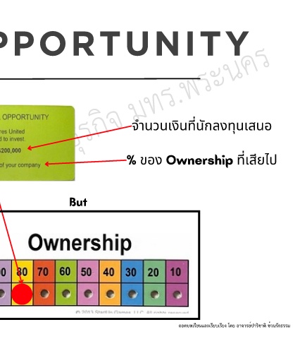 CAPITAL OPPORTUNITY จํานวนเงนทนักลงทุนเสนอ ิ ี ี % ของ Ownership ทเสียไป Yes But + $200,000 ถอดบทเรียนและเรียบเรียง โดย อาจารยปาริชาติ ช้วนรักธรรม ์