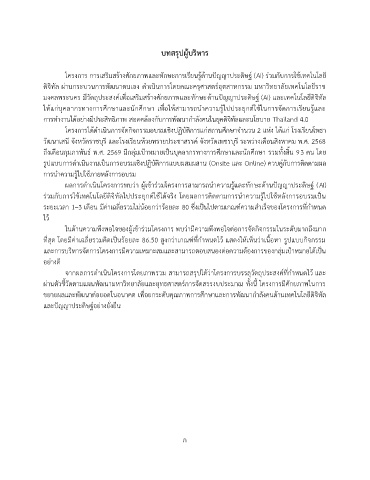 ผลการด าเนินโครงการพบว่า ผู้เข้าร่วมโครงการสามารถน าความรู้และทักษะด้านปัญญาประดิษฐ์ (AI)