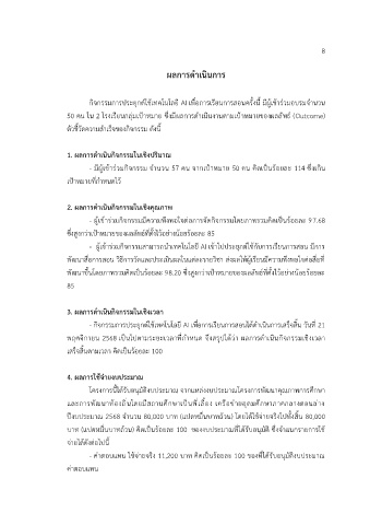 - ผู้เข้าร่วมกิจกรรมสามารถนำเทคโนโลยี AI เข้าไปประยุกต์ใช้กับการเรียนการสอน มีการ