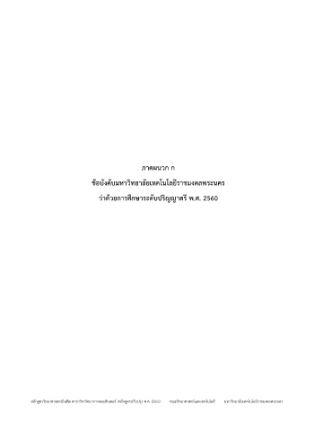 109 ภาคผนวก ก ข้อบังคับมหาวิทยาลัยเทคโนโลยีราชมงคลพระนคร ว่าด้วยการศึกษาระดับปริญญาตรี พ.ศ. 2560 หลักสูตรวิทยาศาสตรบัณฑิต สาขาวิชาวิทยาการคอมพิวเตอร์ (หลักสูตรปรับปรุง พ.ศ. 2566) คณะวิทยาศาสตร์และเทคโนโลยี มหาวิทยาลัยเทคโนโลยีราชมงคลพระนคร