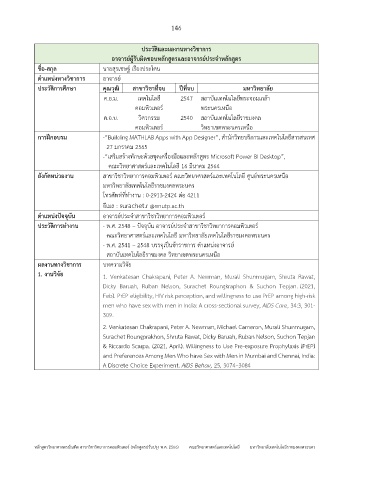 ประวัติการท างาน - พ.ศ. 2548 – ปัจจุบัน อาจารย์ประจ าสาขาวิชาวิทยาการคอมพิวเตอร์