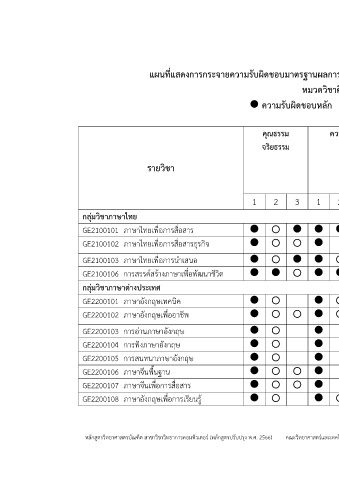 แผนที่แสดงการกระจายความรับผิดชอบมาตรฐานผลการเรียนรู้จากหลักสูตรสู่รายวชา (Curriculum Mapping)