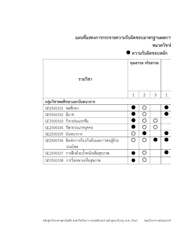 แผนที่แสดงการกระจายความรับผิดชอบมาตรฐานผลการเรียนรู้จากหลักสูตรสู่รายวชา (Curriculum Mapping)