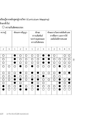 แผนที่แสดงการกระจายความรับผิดชอบมาตรฐานผลการเรียนรู้จากหลักสูตรสู่รายวชา (Curriculum Mapping)