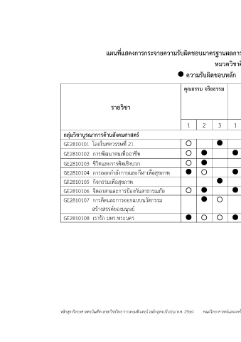 แผนที่แสดงการกระจายความรับผิดชอบมาตรฐานผลการเรียนรู้จากหลักสูตรสู่รายวชา (Curriculum Mapping)