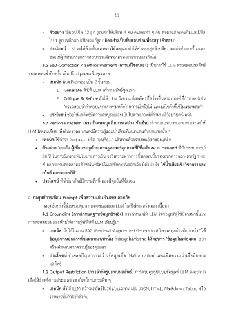 2. Critique & Refine สั่งให้ LLM วิเคราะห์ผลลัพธ์ที่สร้างขึ้นตามเกณฑ์ที่กำหนด (เช่น