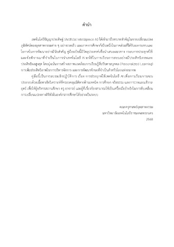 คู่มือนี้เป็นการอบรมเชิงปฏิบัติการ เรื่อง การประยุกต์ใช้เทคโนโลยี AI เพื่อการเรียนการสอน