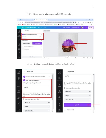22 15.2.3 ปรับขนำดแปรง แล้วระบำยลงบนพื้นที่ที่ต้องกำรแก้ไข 15.2.4 พิมพ์ข้อควำมแสดงสิ่งที่ต้องกำรแก้ไข จำกนั้นคลิก "สร้ำง"