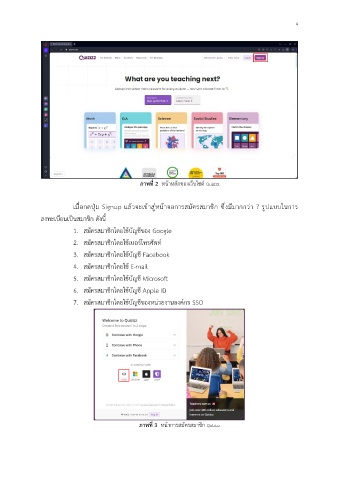 ภาพที่ 3 หน้าการสมัครสมาชิก Quizizz