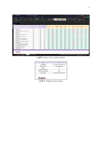 20 ภาพที่ 32 ข้อมูลการทำแบบทดสอบตามเวลา ภาพที่ 33 ข้อมูลสรุปของแบบทดสอบ