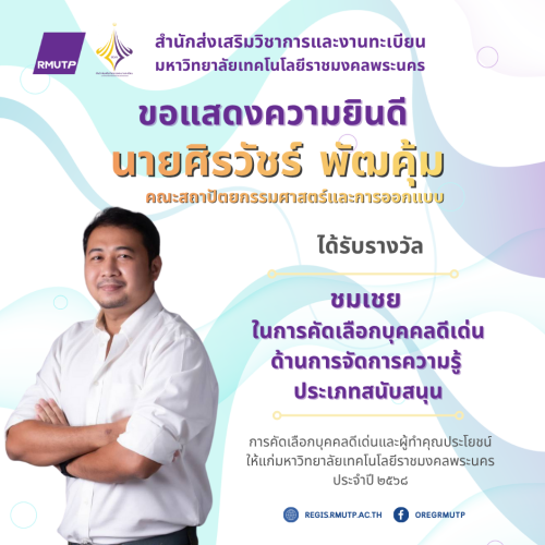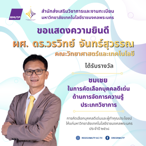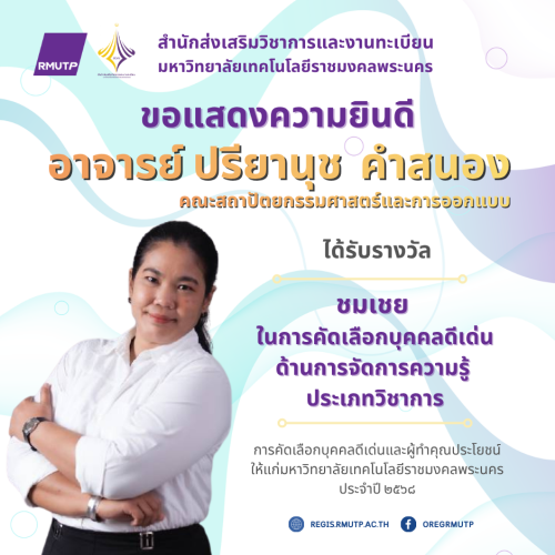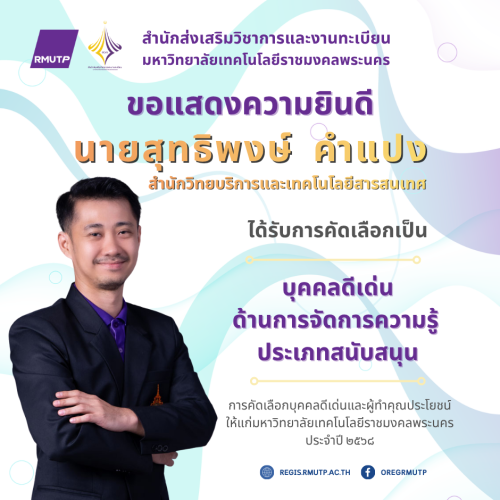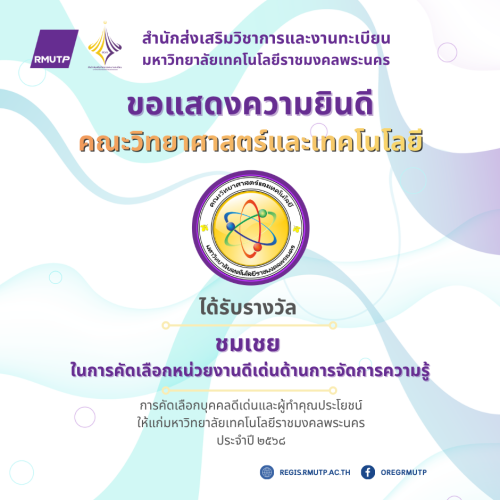 งานประกันคุณภาพและการจัดการความรู้ สำนักส่งเสริมวิชาการและงานทะเบียน ขอแสดงความยินดีกับบุคคลและหน่วยงานที่ได้รับการคัดเลือกบุคคลดีเด่นและหน่วยงานดีเด่นด้านการจัดการความรู้ ประจำปี 2568![]()